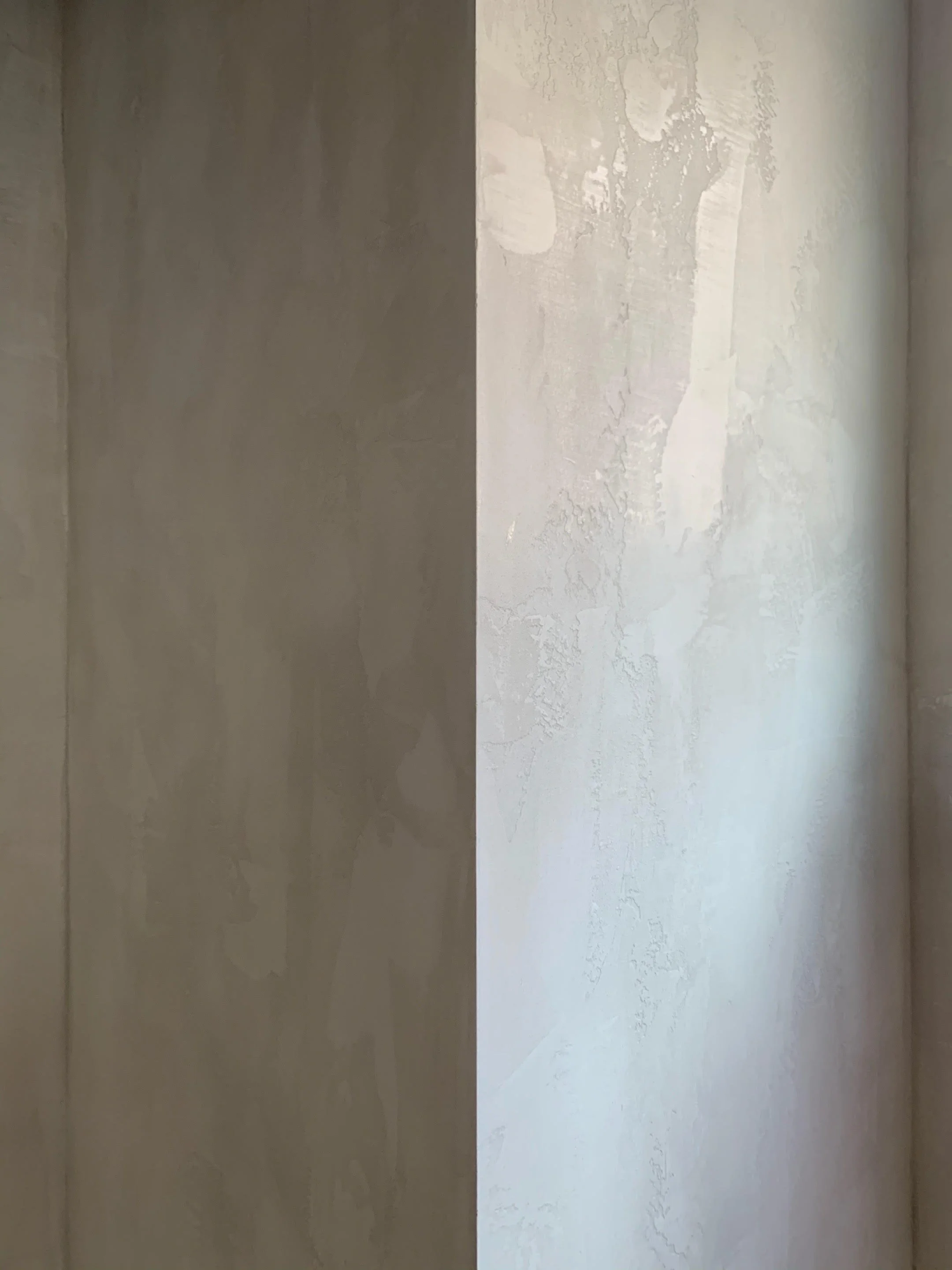 One of our most popular solutions, this finish has more depth and texture. It can be applied as an all-over treatment, or different textures can be layered to create a more custom look - like the image at right. Easy to clean, this surface is ideal for high-traffic restaurants, kitchen backsplashes, or bathroom surfaces. Ideal for any room in the house to add warmth and to ground the space. Offered in microcement, tadelakt, clay plaster, and lime-based plaster to suit the needs of the space.